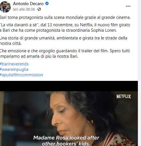 Qyteti i Barit, në Itali është vendosur në skenën botërore falë kinemasë së madhe. Transmetimi në Netflix, duke filluar nga 13 nëntori, i filmit ‘Jeta…