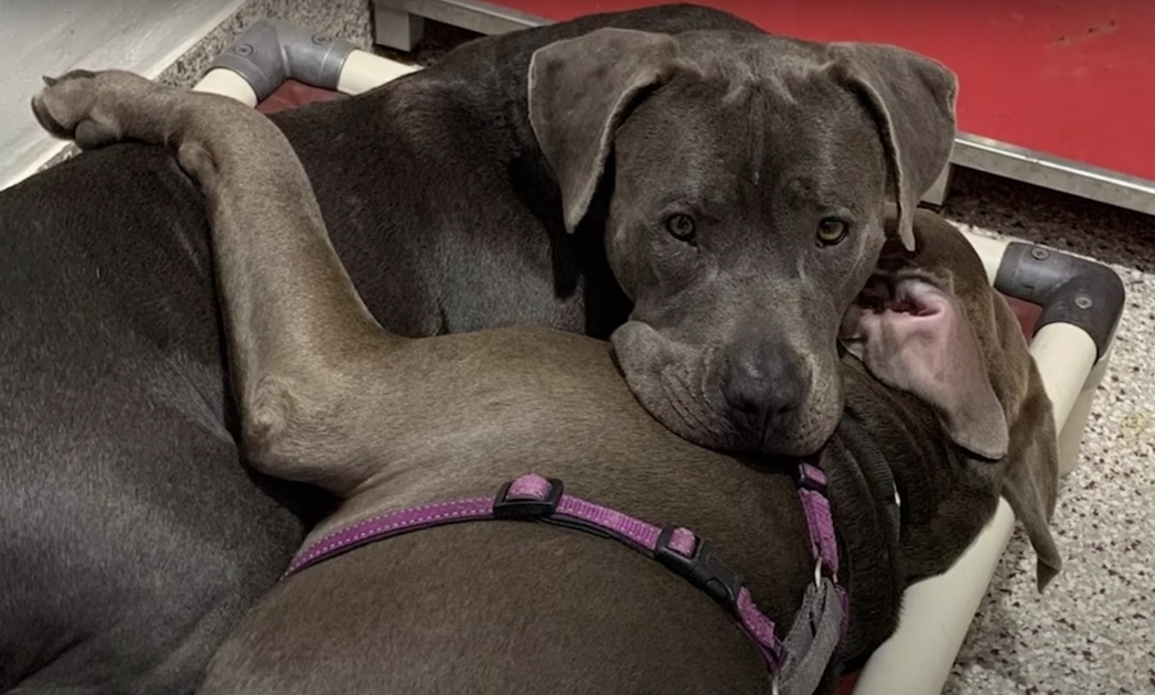 When two Pit Bulls, Jukebox and Agatha, came into the shelter, their bond was quite obvious. Despite their large kennel with two separate beds, they insisted on being glued to one another. They even shared a single bed. Their bodies were constantly entwined. This was no ordinary friendship and the shelter volunteers knew that and were worried.