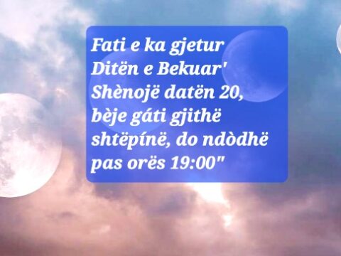 Fati e ka gjetur Ditën e Bekuar’ Shènojë datën 20, bèje gáti gjithë shtëpínë, do ndòdhë pas orës 19:00″