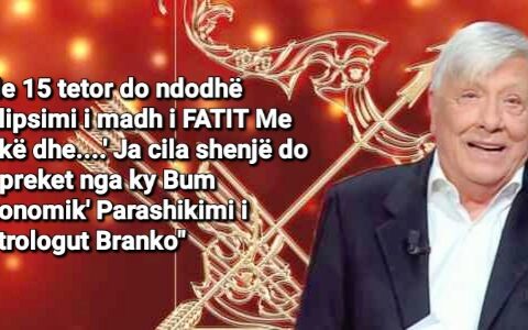 Tag: “Me 15 tetor do ndodhë eklipsimi i madh i FATIT Me Lekë dhe….’ Ja cila shenjë do të preket nga ky Bum ekonomik’ Parashikimi i astrologut Branko”